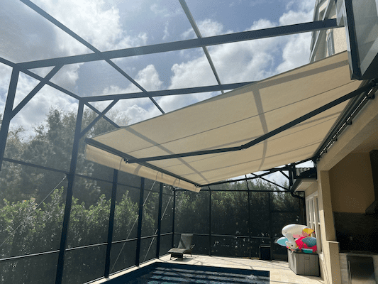 For many homeowners, the answer is “not as much as we’d like.” The screen enclosure handles bugs, but it doesn’t solve the other challenges that make lanais uncomfortable: the relentless Florida sun beating through the screen roof, the heat that builds up with no shade relief, and the afternoon storms that turn lanai time into a gamble.